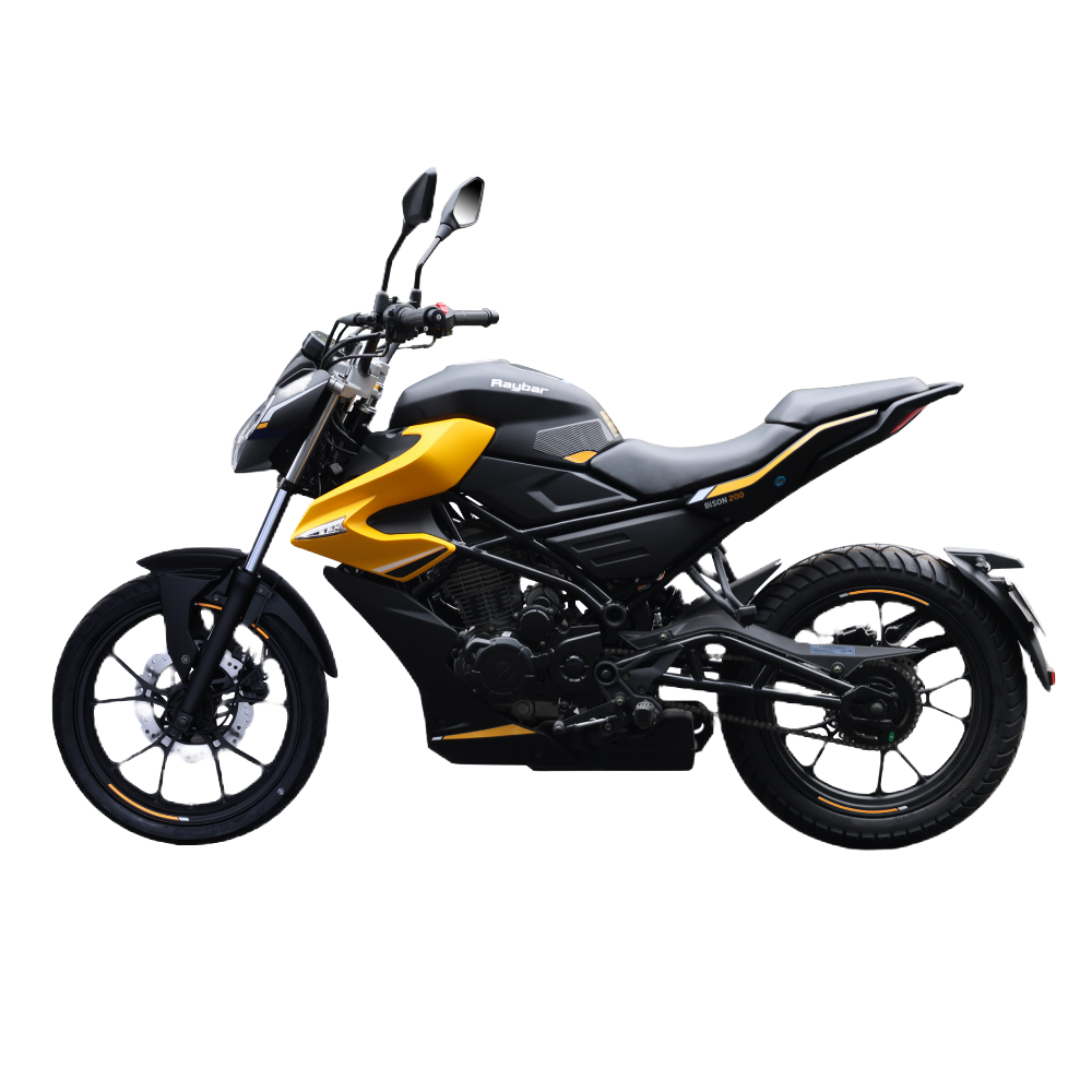 The Raybar Bison 200 is a rugged enduro/all-terrain powerhouse, engineered for riders who crave both adventure and dependability. With its 200cc engine, long-travel suspension, and durable build, it's perfect for off-road trails and powerful performance on city roads alike. Its high ground clearance and tough chassis ensure you stay in control, even on the roughest terrain. Whether you're navigating city streets or blazing new paths, the Bison 200 is built to conquer every ride with confidence.